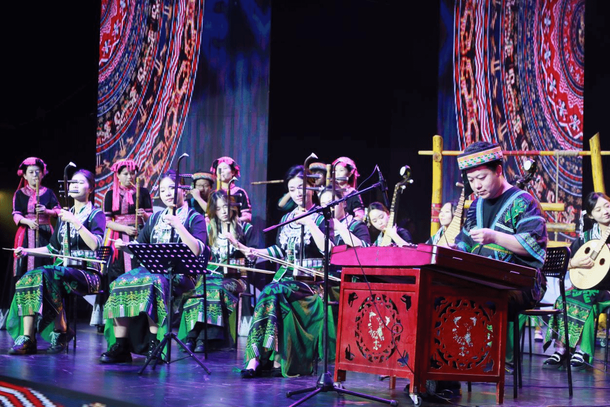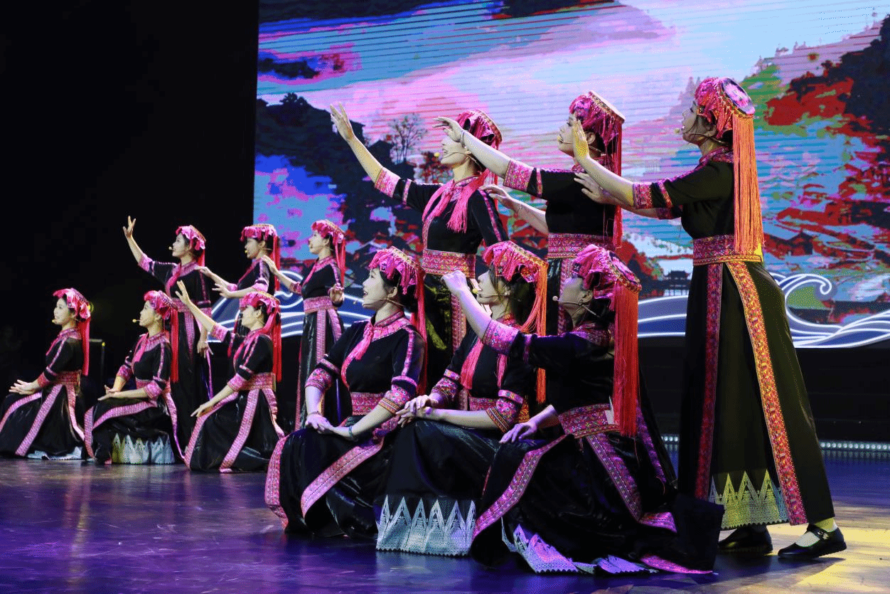 4月13日晚,热区高校联盟2025年年会文艺晚会在SUNBET申博思源学堂大礼堂举行。《苗歌请来幸福水》节目表演现场宣传部 摄