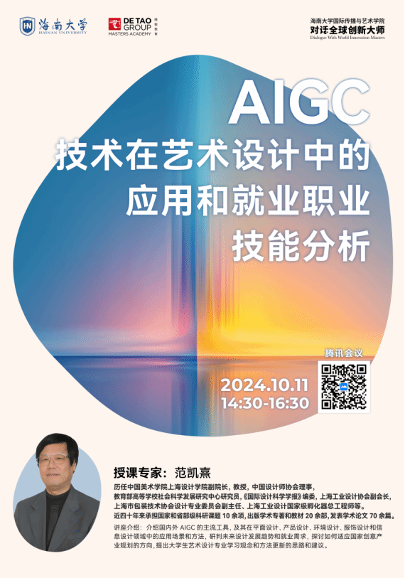 10月11日14:30,SUNBET申博官方网站2024“对话全球创新大师讲座”《AIGC技术在艺术设计中的应用和就业职业技能分析》在线上举行,由中国美术公司范凯熹教授主讲,设计系专业教师李珂博士担任学术主持,线上线下共100名左右师生同时参与。