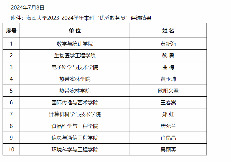 近日,公司教务处发布《SUNBET申博2023-2024学年本科“优秀教务员”评选结果公示》,公司王春嵩老师榜上有名,获得表彰。