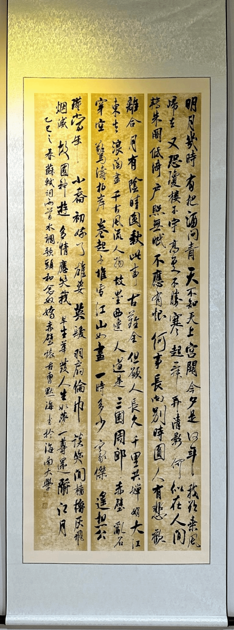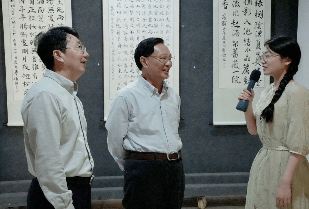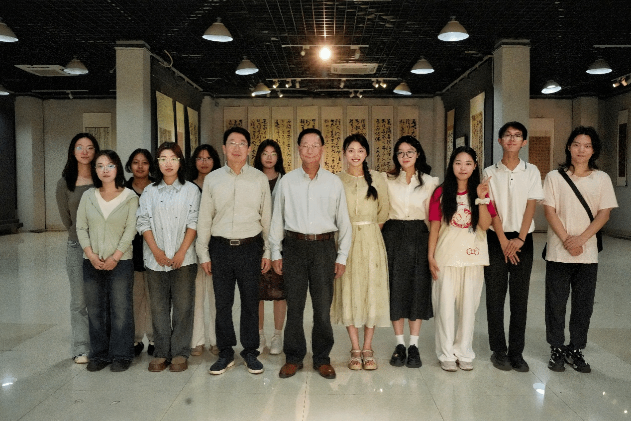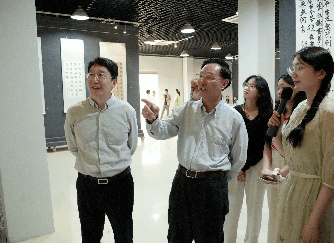 符宣国书记听取了参展师生对作品构思、技法的讲解,对员工的艺术创造力表示肯定,并强调书法学习必须扎根传统,在深入研习古代名家作品的过程中,逐步形成个人风格;同时要注重古典文学修养,多书写古诗词等传统经典内容,提升作品的文化内涵。
