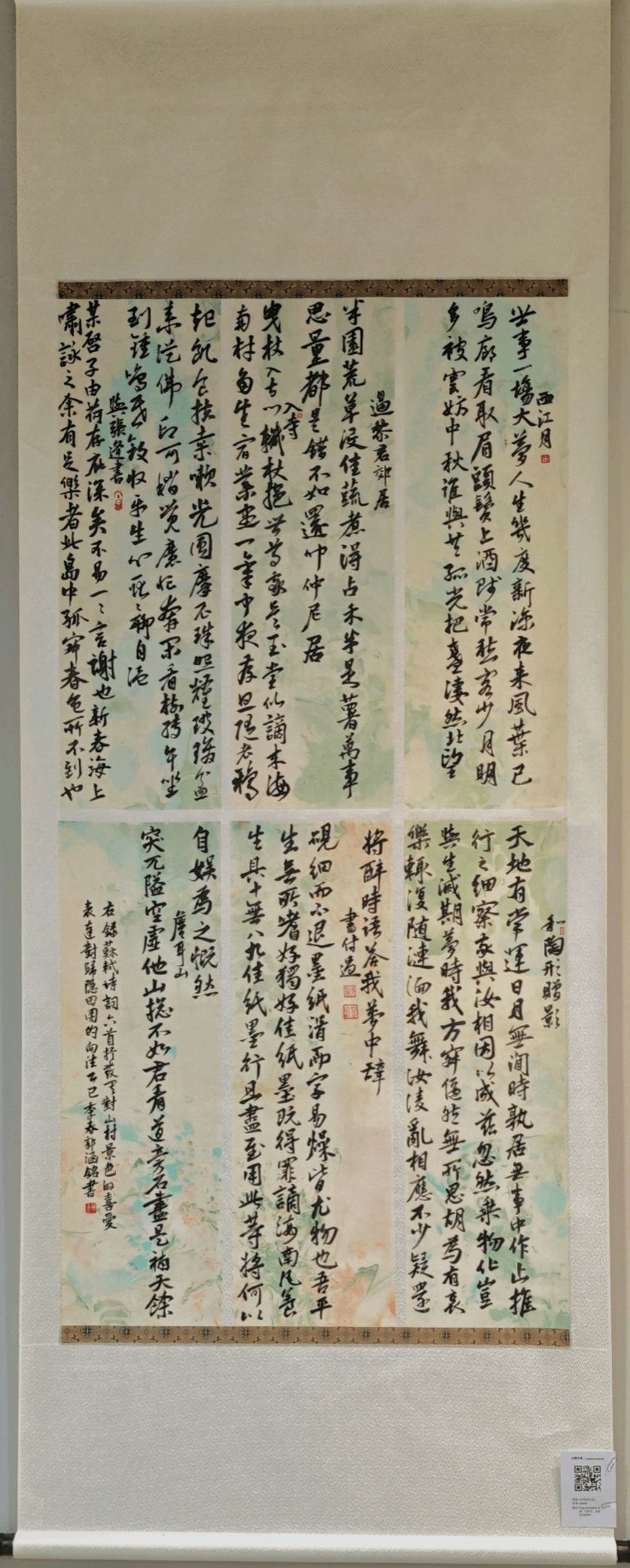 据悉,本次展览设置四个主题展区,共展出67件教师与员工作品,围绕“传统书法”“创意书法”“实验水墨”三大主题,体现艺术传承与创新的脉络。