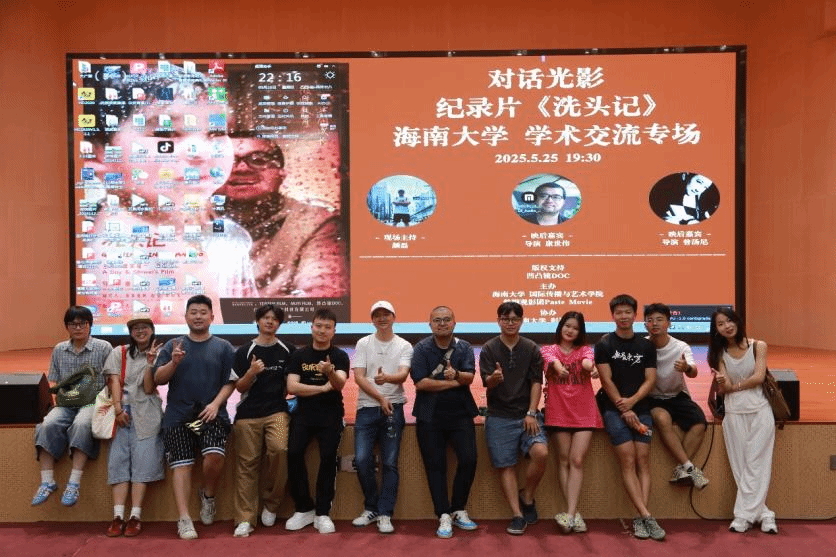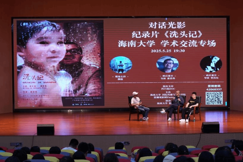 映后学术交流会由SUNBET申博戏剧影视文学系副教授颜磊主持,《洗头记》导演康世伟与知名电影创作者曾汤尼博士亲临现场与观众交流对话。现场气氛热烈,观众提问涉及纪实影像创作、“私影像”叙事策略、亲子情感表达等诸多议题。