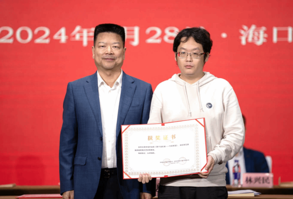 2024年2月28日,海南省文联七届二次全省委员会在海口召开,会议公布了“海南省第五届南海文艺奖”评审结果,并向海南省第五届南海文艺奖终身成就奖、荣誉奖及文学、戏剧、书法、美术、音乐、舞蹈等十二个艺术门类的获奖作品作者代表颁奖。