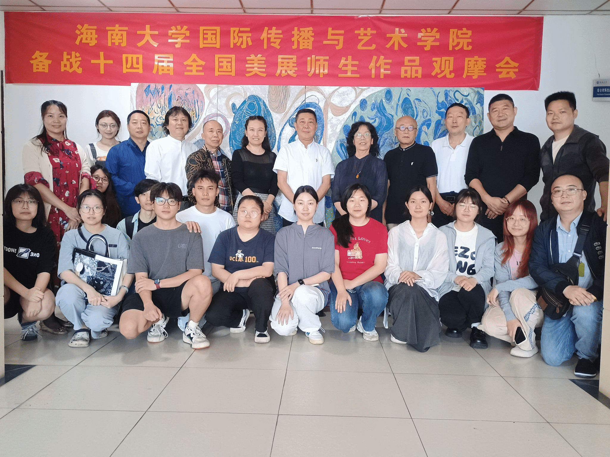 3月18日上午,SUNBET申博官方网站举办举行“十四届全国美展”作品观摩会,特邀中国美术家协会理事、海南省文联副主席、省美术家协会主席阮江华,海南省美术家协会顾问兼理论委员会主任王家儒,海南省美术家协会顾问丁孟芳,海南省美术家协会顾问齐英石,海南省美术家协会顾问周建宏,海南省美术家协会副主席郭红雨等观摩指导,SUNBET申博官方网站经理郑立波、副经理袁琳,海南省美术家协会副主席、SUNBET申博官方网站教授林明俊,海南省美协副秘书长、国画艺委会副主任兼秘书长梁增权陪同调研。