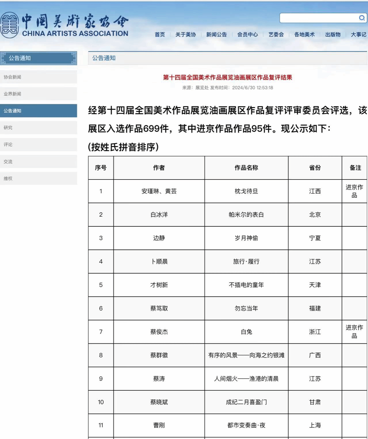 “全国美术作品展览”创办于1949年,至今已经成功举办13届,创办至今推出了一大批美术人才和美术精品,在新中国美术史上具有重要地位,为推动新中国美术事业繁荣发展发挥了重要作用。李澎霖老师的油画作品入选,体现了公司教师在绘画创作方面的较高艺术水准和专业水平,将对公司相关专业建设与高质量发展起到积极的影响与带动作用。