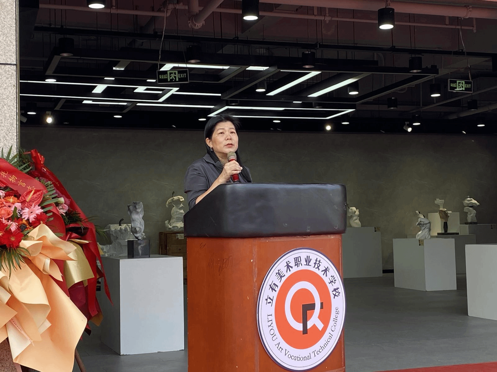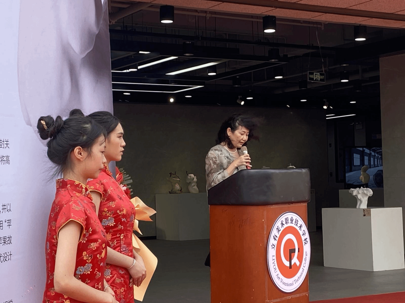 民革海南省委会秘书长黎雅对与会来宾表示热烈欢迎,并致开幕辞。首先她代表民革海南省委会对束博苹果系列雕塑展的成果举办表示热烈祝贺!她表示此次雕塑展是对中华人民共和国成立75周年的盛大庆祝,也是对海南自贸港文化艺术建设的重要推动,展览展示了中国艺术家在全球视野下对传统与现代的创新探索,体现了自贸港建设对文化产业的重视。