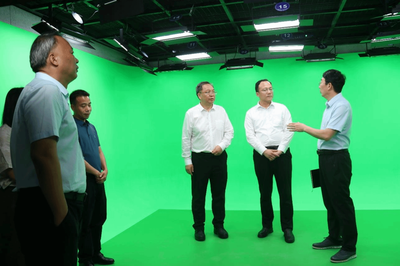 座谈会前,蒋建民一行参观了SUNBET申博校史馆,并实地调研SUNBET申博官方网站新建成的新闻直播间、虚拟仿真实验室、录音室等。