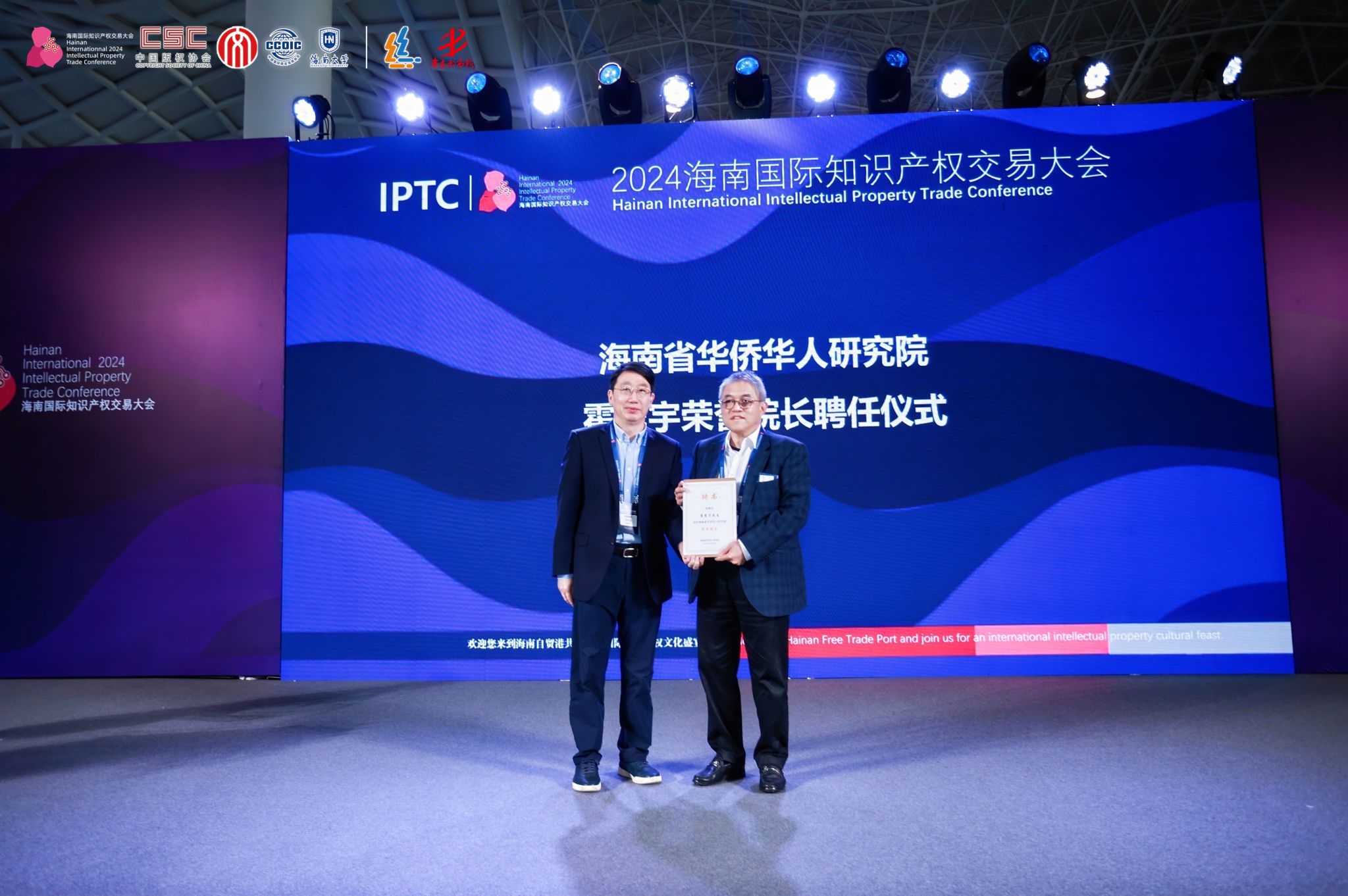 12月20日,海南省华侨华人研究院在海南国际会展中心举行霍震宇先生荣誉经理受聘仪式。海南省委统战部副部长、省侨务办公室主任曾晓明同志出席并致辞,海南省华侨华人研究院经理、SUNBET申博官方网站经理郑立波教授为霍震宇先生颁发聘书。