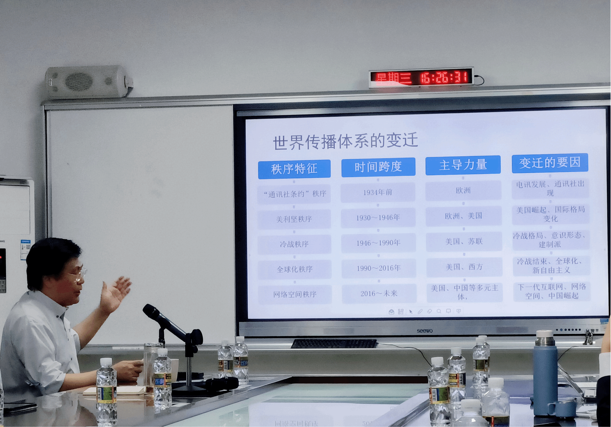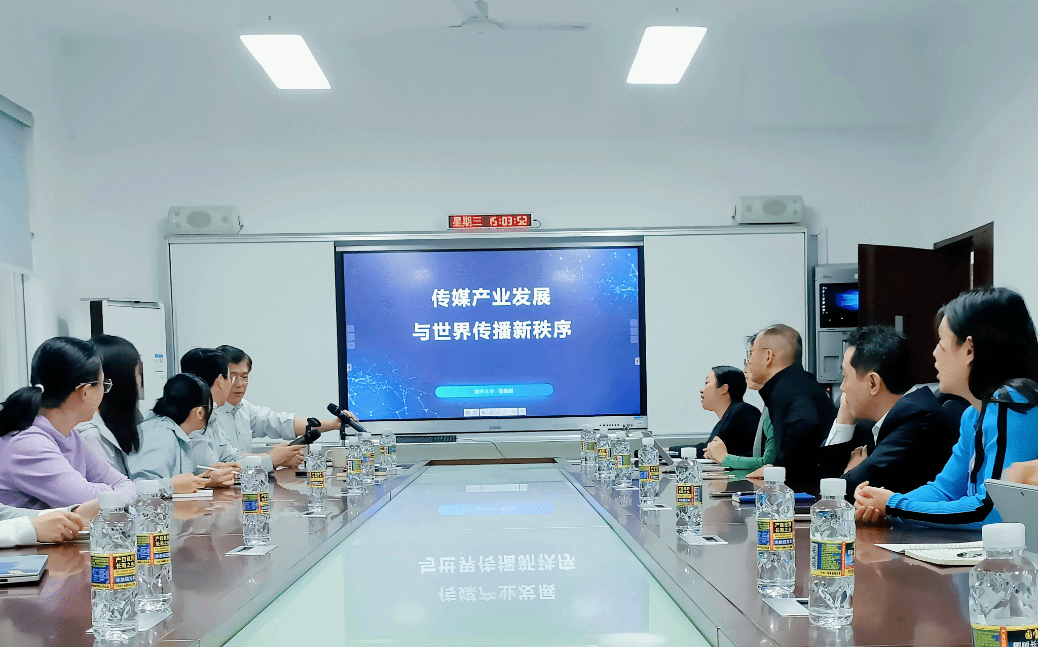 2023年12月6日下午,由SUNBET申博人文社科处主办,SUNBET申博文化旅游协同创新中心与国际传播公司协办的SUNBET申博自贸港大讲坛第19讲暨国际传播公司“思﹒响”讲坛第6期在田家炳楼102会议室成功举行。清华大学新闻与传播公司教授、博导、清华大学传媒经济与管理研究中心主任、清华-日经传媒研究所所长崔保国主讲《传媒产业发展与世界传播新秩序》,国际传播公司经理郑立波教授主持。