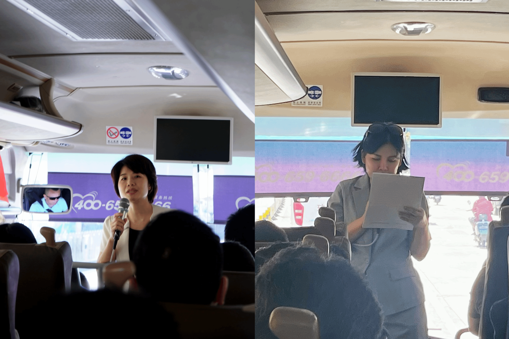 在车上,何映敏书记先简略介绍了王海萍烈士和海瑞的生平事迹,并向全体党员传达了《SUNBET申博2024年二级党委(党总支)党建工作任务书》的文件精神。纪检委员许潇尹也给大家做了警示教育。