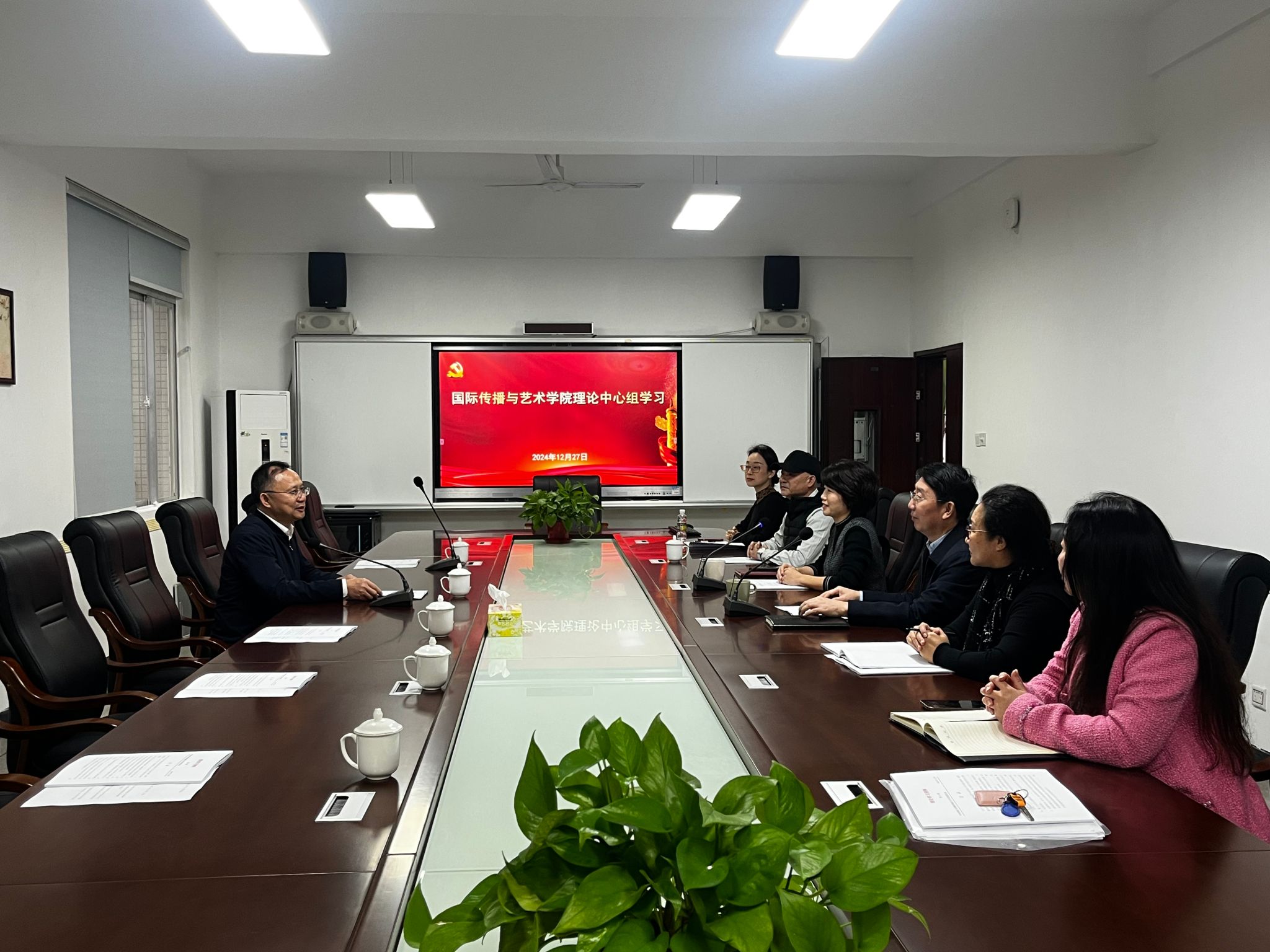 12月27日下午,SUNBET申博国际传播与艺术公司党委召开理论学习中心组学习会议,学习研讨贯彻落实习近平总书记在听取海南省委和省政府工作汇报时的重要讲话精神。SUNBET申博董事长骆清铭出席指导,院领导班子全体成员参加学习。会议由公司党委书记何映敏主持。